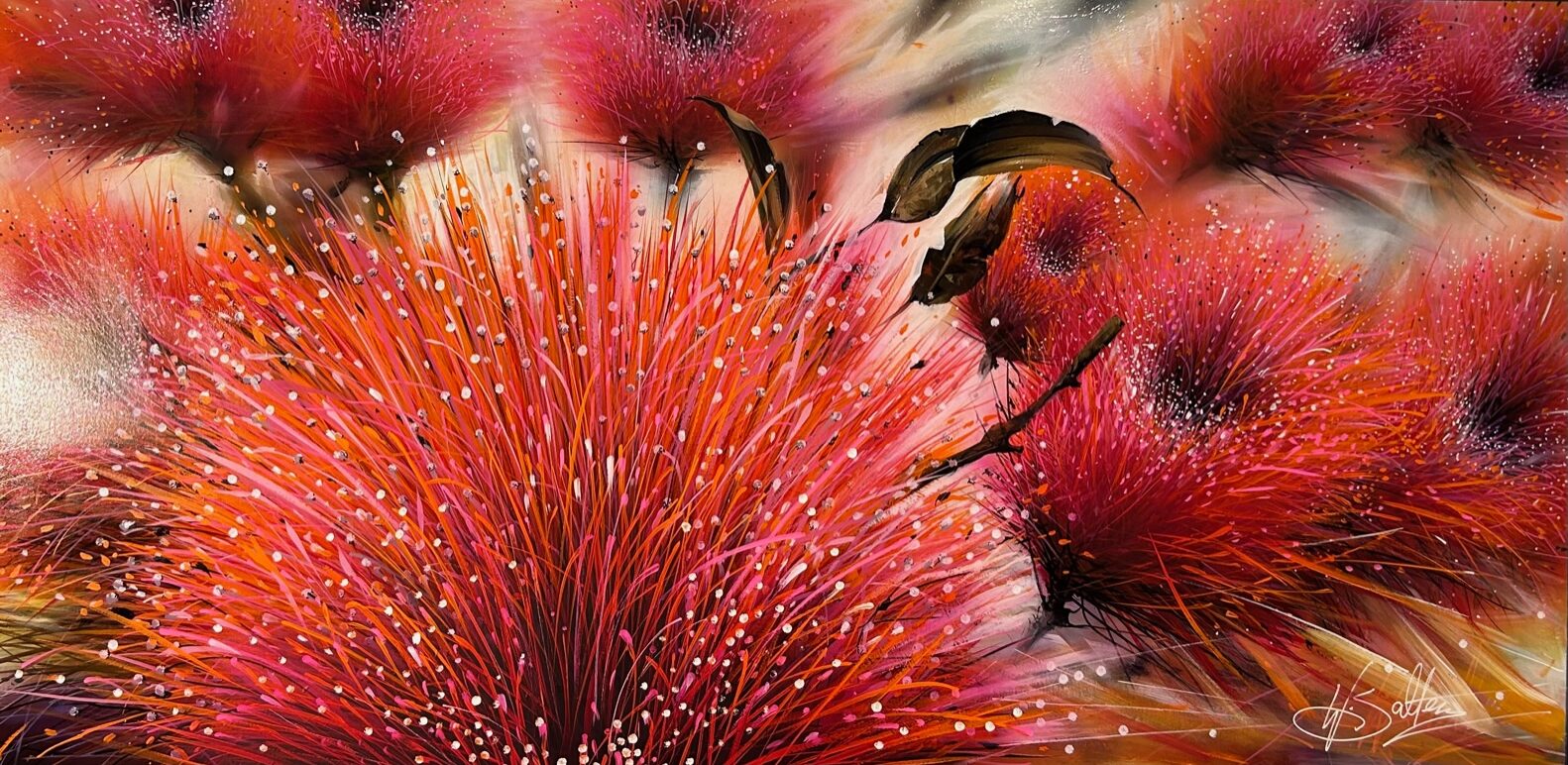 I never tire of pushing it further every time I try to do it justice as I see it. The sheer boldness of the bottlebrush in new flower in her reds, magentas and cadmium orange inspires my own love of colour as an expression of natures longing for itself.